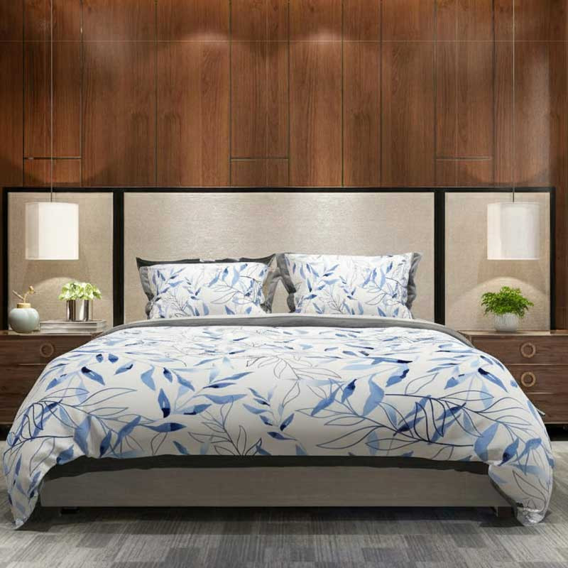 Bettgarnitur Duvet Satin Blau mit blau Blatter