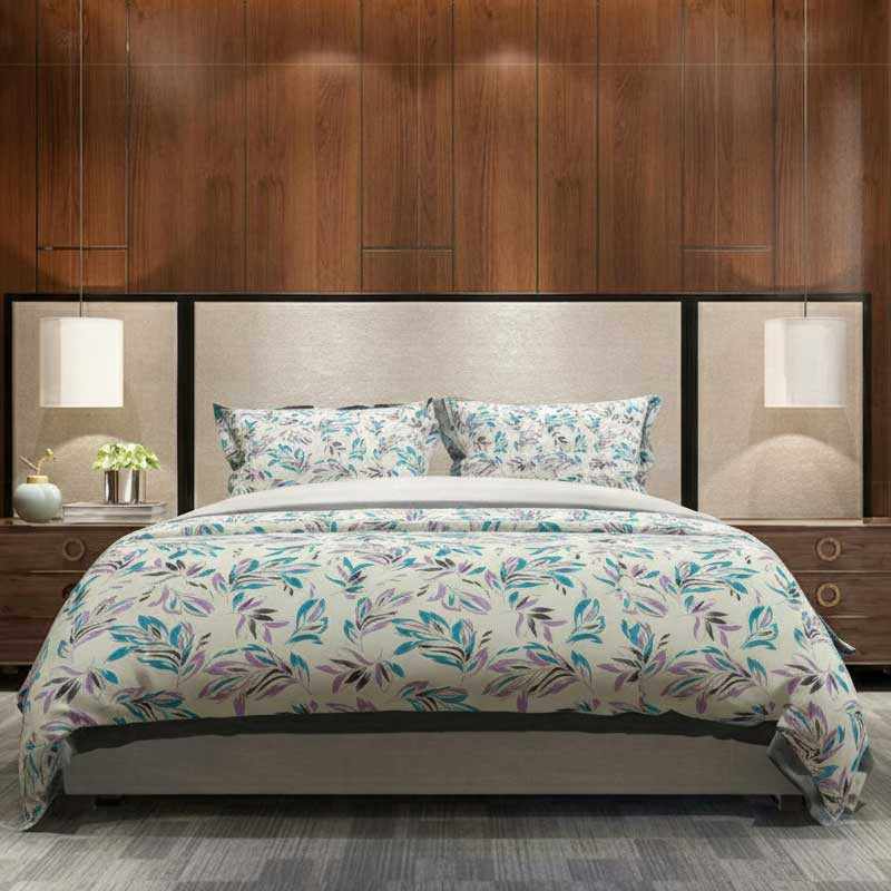 Bettgarnitur Duvet Satin Blau mit blau-violette Blatter